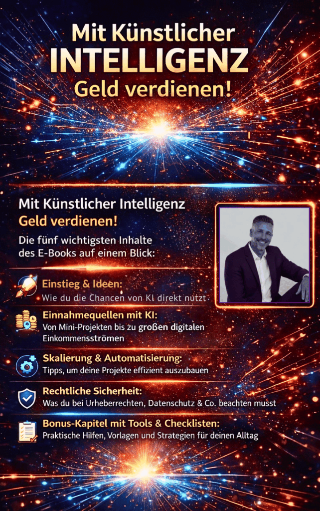 Wie KI funktioniert und welche Chancen sie bietet. Konkrete Mini-Projekte für schnelle Einnahmen. Digitale Produkte, Dienstleistungen und skalierbare Online-Modelle. Rechtliche Hinweise, Urheberrecht und Sicherheit bei KI-Inhalten. Praktische Tools, Checklisten und Bonus-Strategien